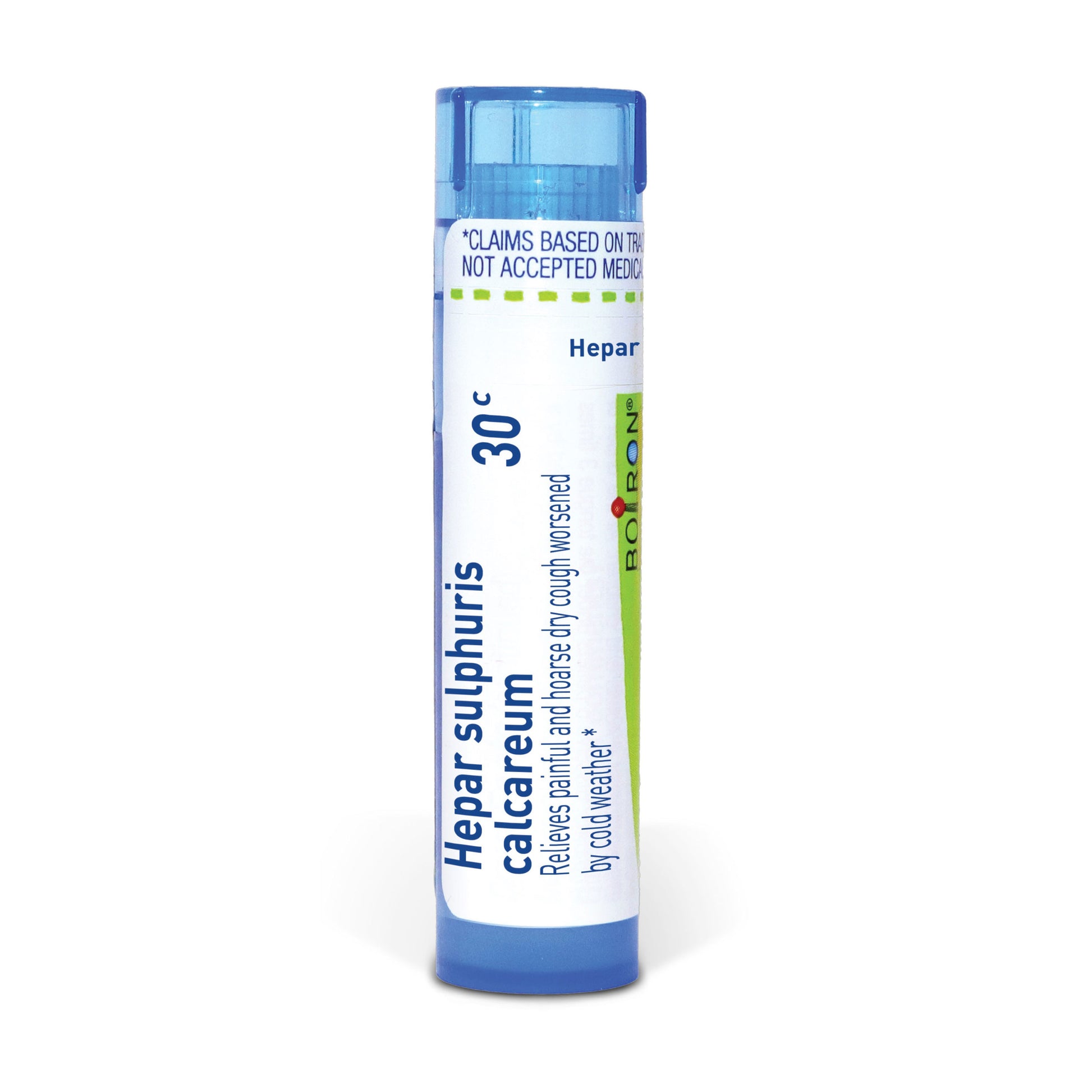 Hepar Sulphuris Calcareum is a homeopathic medicine that relieves painful and hoarse dry cough worsened by cold weather.* The pellets melt in your mouth and can be taken on the go, no food or water needed.