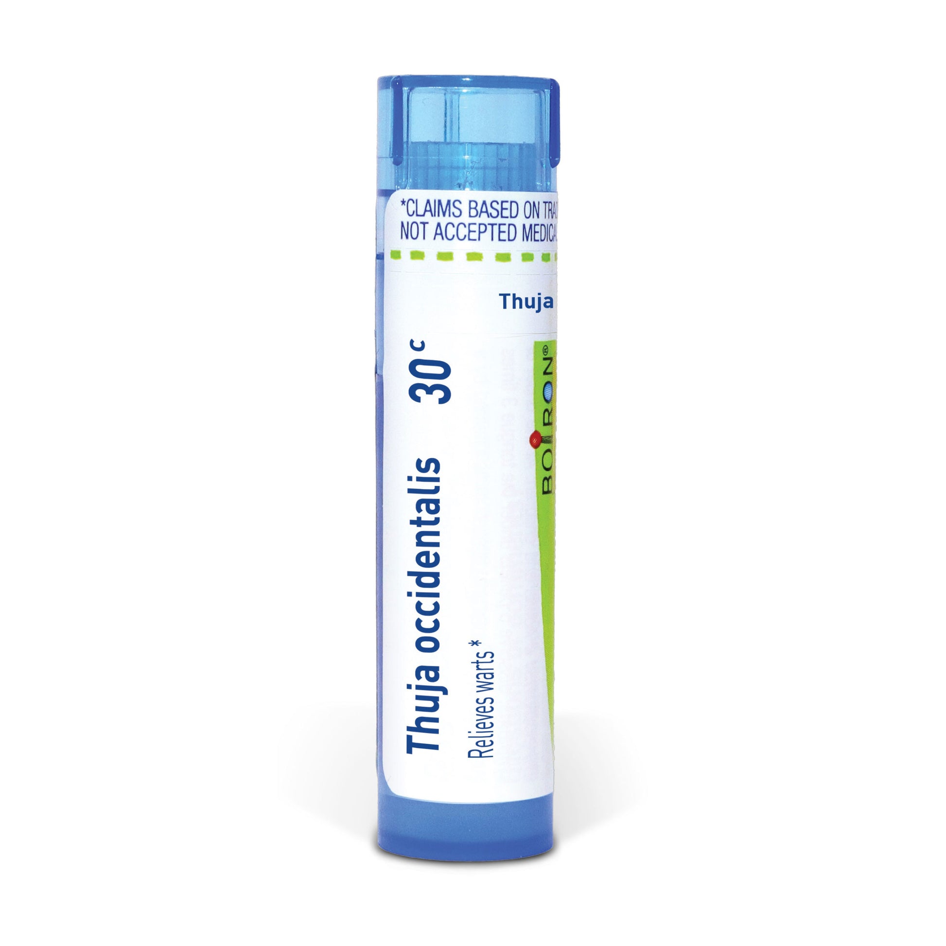 Thuja Occidentalis is a homeopathic medicine that relieves warts.* The pellets melt in your mouth and can be taken on the go, no food or water needed.